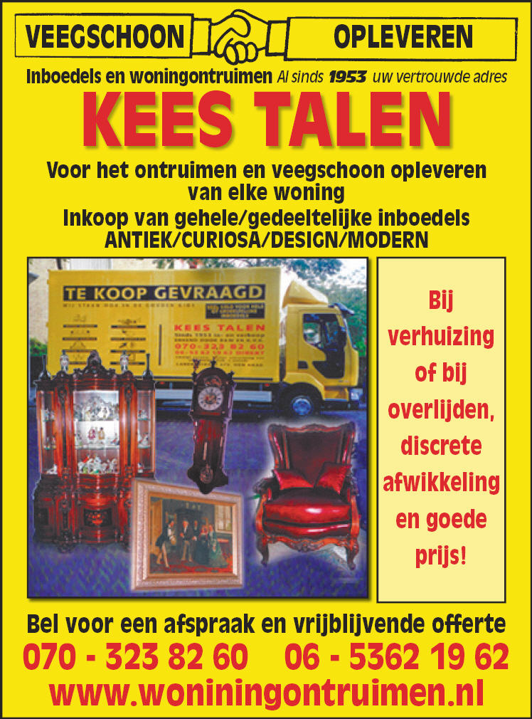 In het geval bij een overlijden in Den Haag moet u vaak snel van de inboedel van de woning af. Kees Talen kan de inboedel opkopen. Wilt u hier meer over weten? Neem dan vrijblijvend contact met ons op.